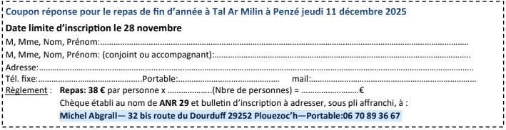 Coupon d’inscription (à renvoyer le 28 novembre à Michel Abgrall)