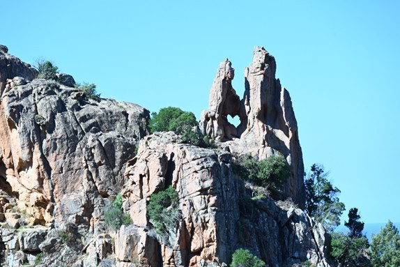 Inselberg, domine le golfe de Saint Florent. Le long de la route nous voyons des